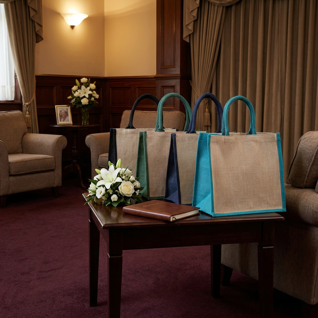 The ARIEL jute bag is made from 100% natural colour jute fibre and is designed to fit the range of cardboard boxes as supplied from the Crematoriums.
